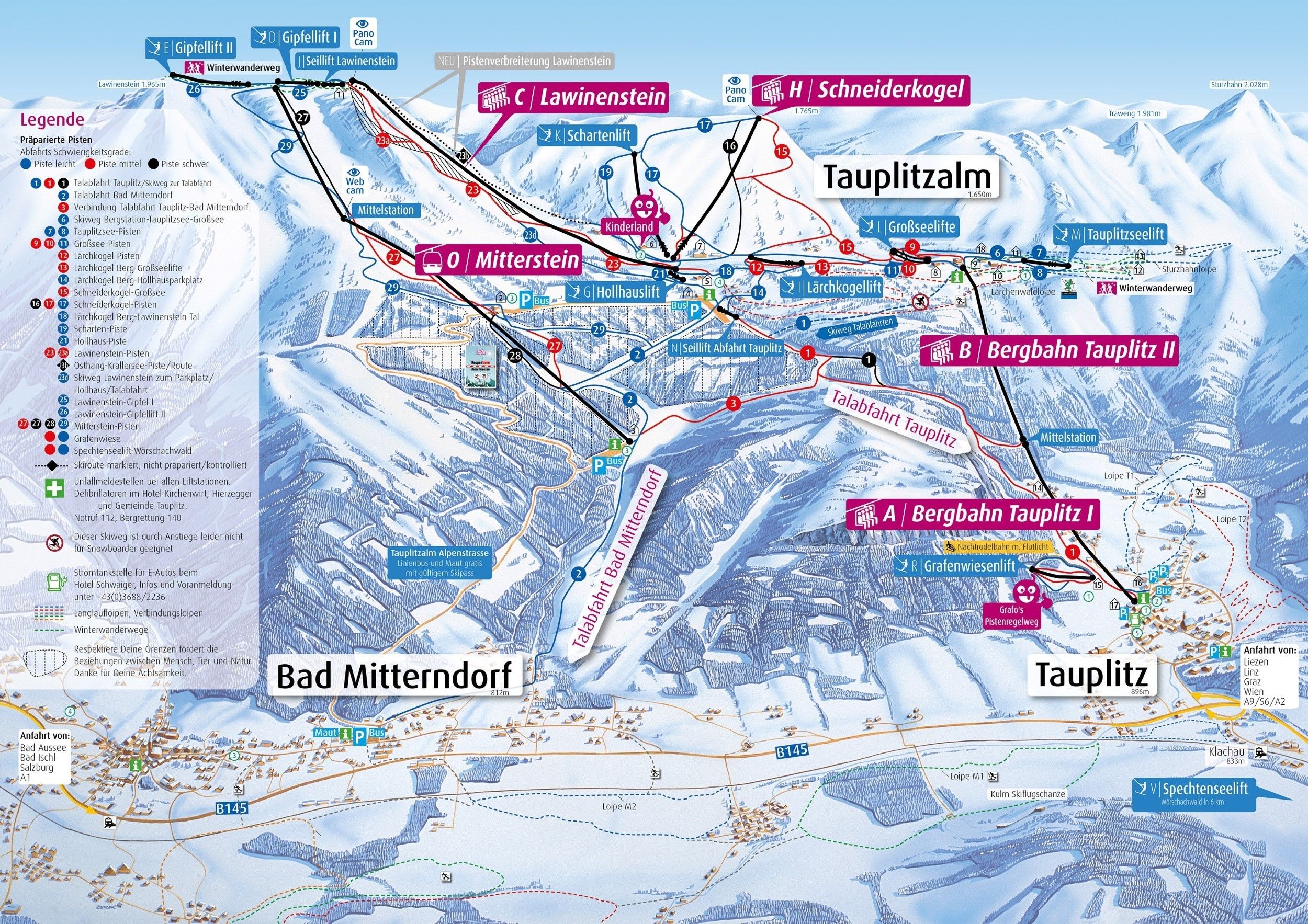 Szukają Państwo informacji o aktualnych warunkach śniegowych? Tutaj zebrane są informacje o warunkach pogodowych na następne dni w miejscowości Tauplitz. Dzięki kamerkom internetowym można na żywo śledzić warunki w danym ośrodku. Dodatkowo ukazane są czynne wyciągi w ośrodku narciarskim Tauplitz oraz aktualna grubość pokrywy śnieżnej w górach i dolinie. Diagram umożliwia również porównanie warunków śniegowych panujących w poprzednim roku, a także uzyskanie informacji o sezonie w miejscowości Tauplitz.